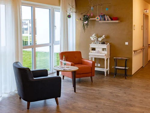 Die jeweils rund 20 Quadratmeter großen 80 Einzelzimmer sind mit bodentiefen Fenstern ausge-stattet. Die Zimmer verfügen über ein klares und funktionales Design. Die Zimmer sind barrierefrei und bieten ausreichend Platz für Bewegungshilfen. Hinzu kommt jeweils ein separates, rund fünf Quadratmeter großes und selbstverständlich senio-rengerecht gestaltetes Badezimmer mit Dusche, Waschbecken und WC.Großzügig und behaglich gestaltete Gemeinschafts- und Aufenthaltsräume bieten Platz für geselliges Beisammensein. Durch die bodentiefen Fenster sind alle Räume hell sowie freundlich und modern einge-richtet. Jedes Zimmer kann mit persönlichen Gegenständen gestaltet werden, um eine vertraute Umgebung zu schaffen.