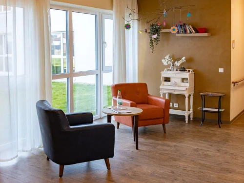 Die jeweils rund 20 Quadratmeter großen 80 Einzelzimmer sind mit bodentiefen Fenstern ausge-stattet. Die Zimmer verfügen über ein klares und funktionales Design. Die Zimmer sind barrierefrei und bieten ausreichend Platz für Bewegungshilfen. Hinzu kommt jeweils ein separates, rund fünf Quadratmeter großes und selbstverständlich senio-rengerecht gestaltetes Badezimmer mit Dusche, Waschbecken und WC.Großzügig und behaglich gestaltete Gemeinschafts- und Aufenthaltsräume bieten Platz für geselliges Beisammensein. Durch die bodentiefen Fenster sind alle Räume hell sowie freundlich und modern einge-richtet. Jedes Zimmer kann mit persönlichen Gegenständen gestaltet werden, um eine vertraute Umgebung zu schaffen.